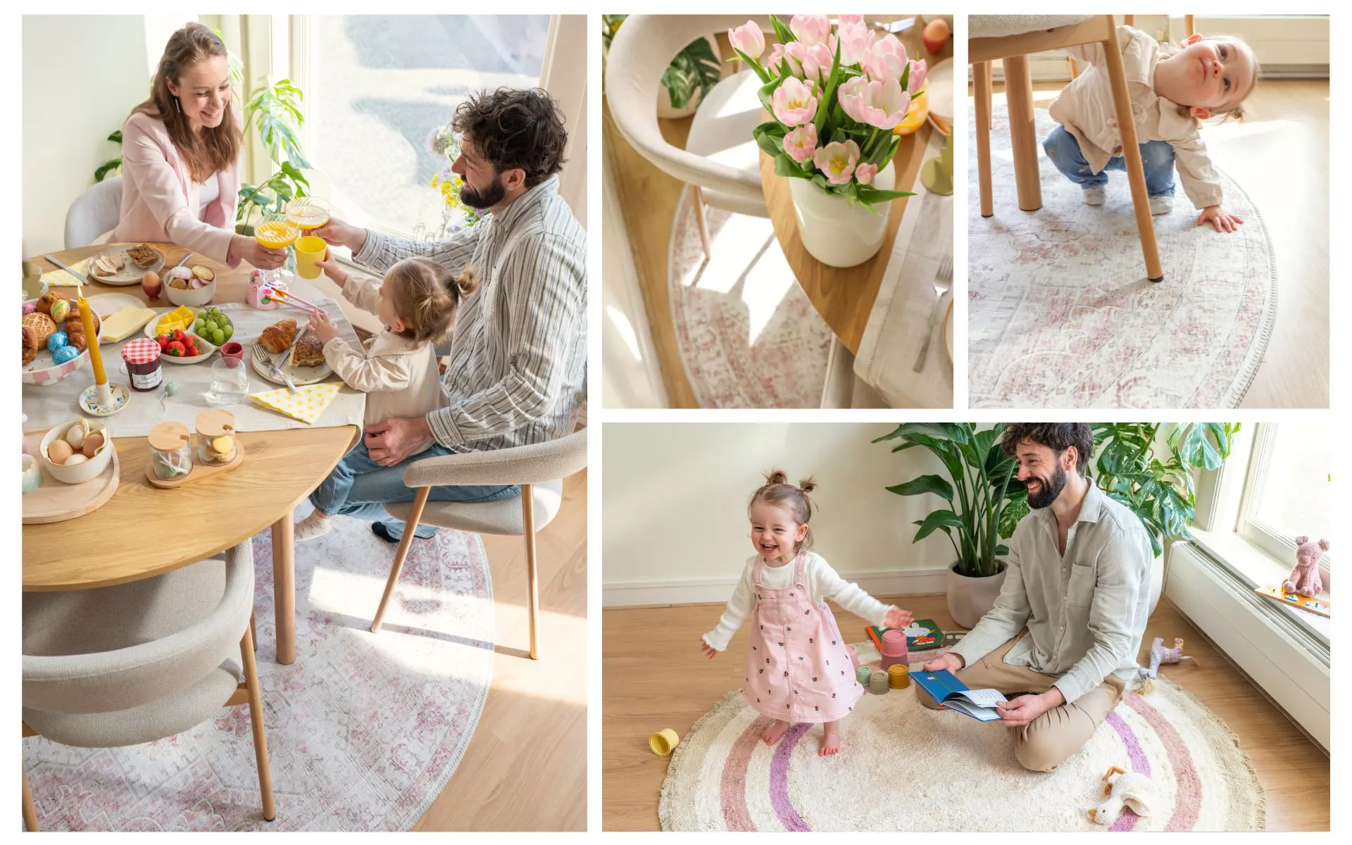 Zachte tinten zijn onlosmakelijk verbonden met de lente. Waar de winter vaak vraagt om diepte en warmte, ontstaat in het voorjaar juist behoefte aan lichtheid, frisheid en een zachtere vorm van kleur. Precies daarom zien we in dit seizoen meer pastelgroen, rustige pastels en verfijnde natureltonen terug. Deze kleuren sluiten aan op hoe de natuur verandert, vangen het daglicht op een subtiele manier en geven een interieur direct een lichtere uitstraling. Van pastelgeel en lichtblauw tot warme zandtinten: ook een roze vloerkleed past perfect binnen dit frisse palet en haalt het lichte, zachte karakter van de lente naar binnen.