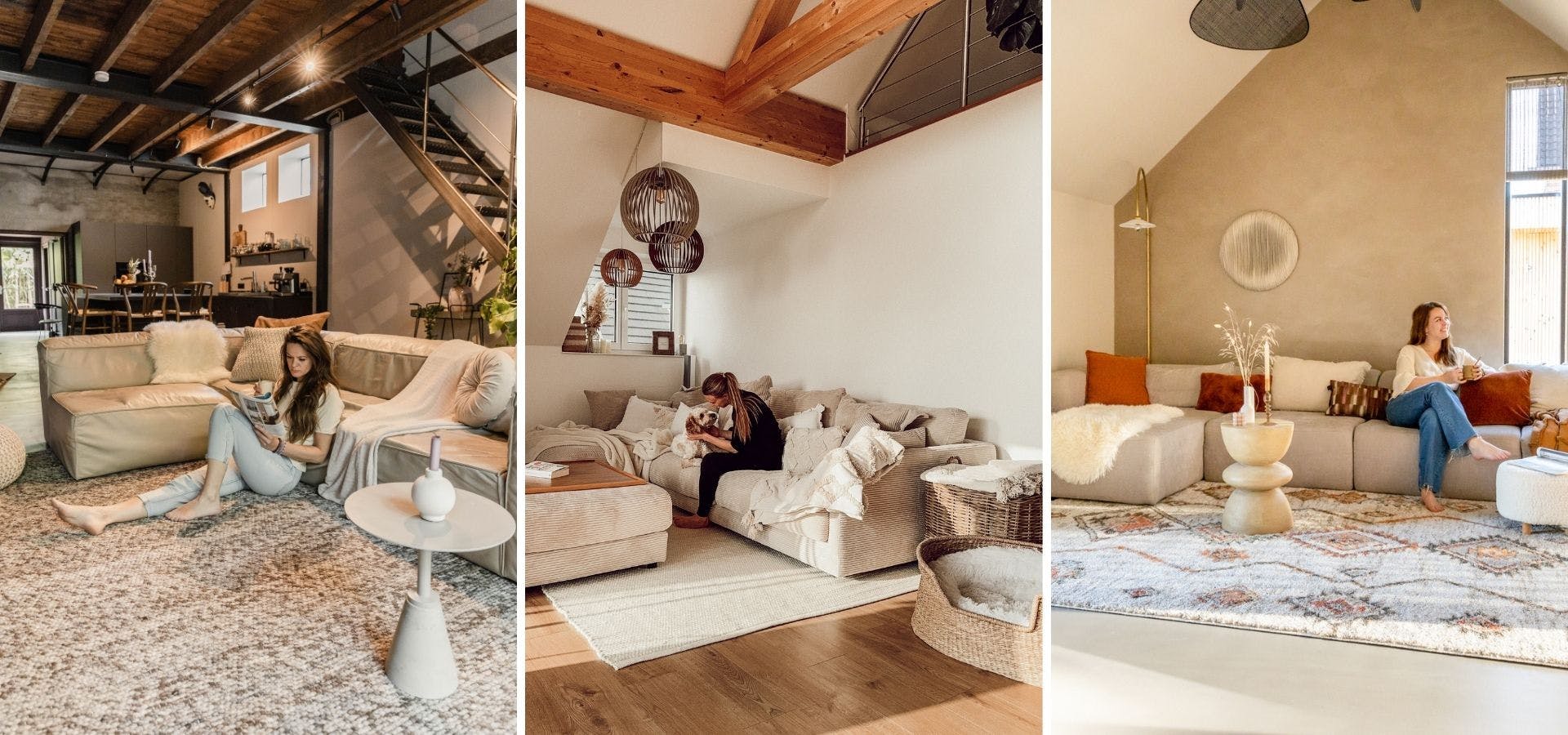 Werk in laagjes: meng verschillende texturen en kleuren op je bank, over de vloer of in je fauteuil. Zo creëer je een speelse, uitnodigende ruimte waar je niet alleen lekker wilt zitten, maar echt het gevoel hebt dat je thuis bent.
