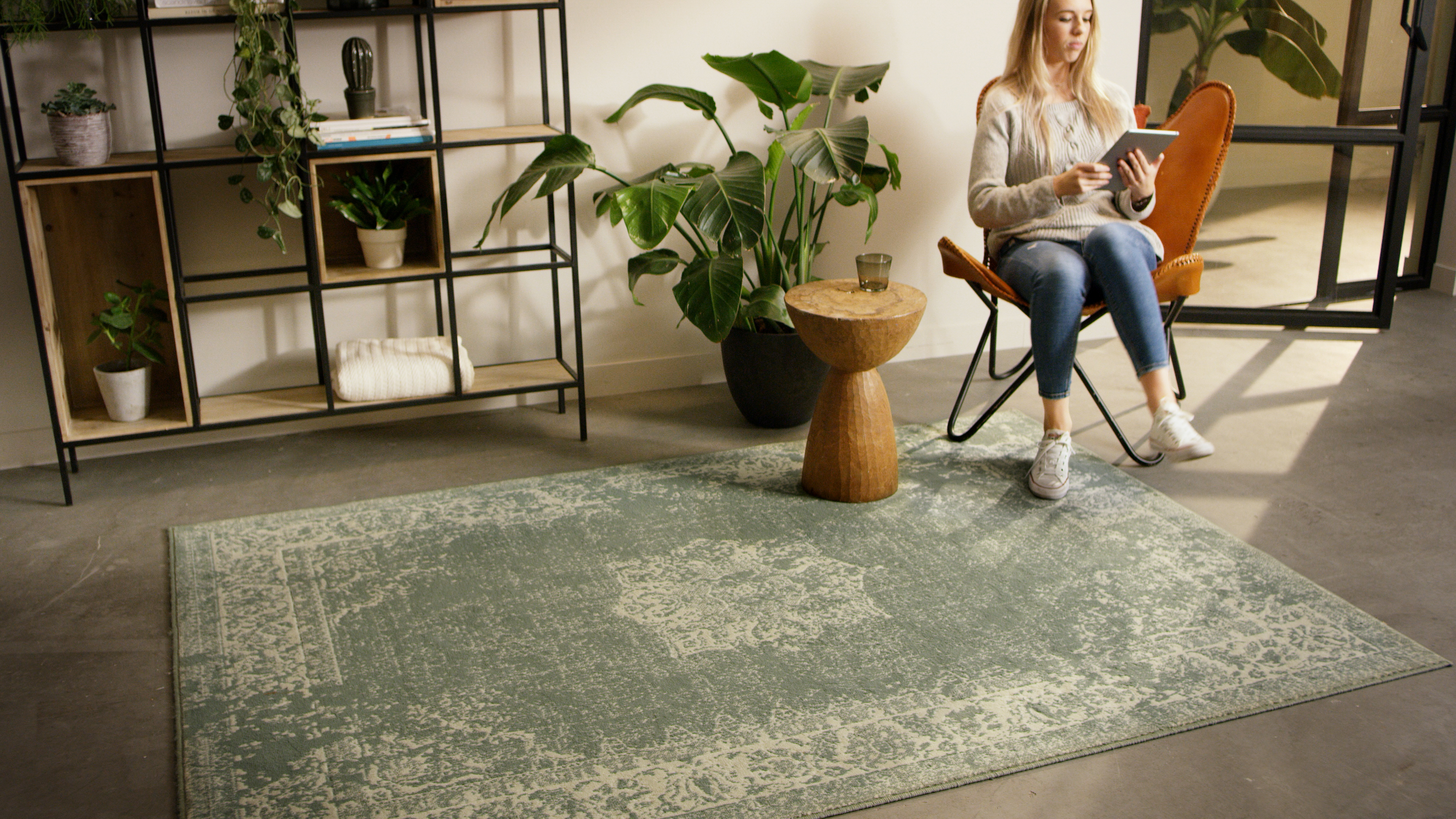 Vintage is terug van weggeweest en hipper dan ooit! Diverse tv-programma’s waarin bescheiden stulpjes worden omgetoverd tot ware droompaleizen zijn de revue gepasseerd en Nederland smult ervan. En dat allemaal met vintage of tweedehands vondsten. De kringloop draait overuren en is allang niet meer alleen voor onfortuinlijken. Tegenwoordig is het dé place to be als het gaan om unieke items. Onze kenners voorspellen dat deze trend zeker nog een rondje meegaat. Geheim van de chef: deze stijl blijft áltijd wel on trend. Hét vintage vloerkleed dat deze stijl perfect omvat is de Wonder. Dit pareltje heeft een gecentreerd medaillon en is omringd door een sierrand. Door de groene pastelkleur past dit vloerkleed helemaal bij de stijl van nu!