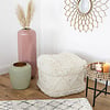 Bohemian poef kubus - Basai 525 Creme is een sfeervol meubelstuk dat een vleugje comfort en stijl aan ieder interieur toevoegt. Met een breedte en lengte van 50cm en een hoogte van 45cm is poef Basai compact genoeg om in iedere ruimte te plaatsen. De bekleding van de poef is vervaardigd uit een natuurlijke en duurzame mix van 90% Nieuw-Zeelands wol en 10% katoen. De warme en knusse sfeer wordt versterkt door het natuurlijke materiaal en het natuurlijke kleurenpallet. De binnenkant van poef Basai is gevuld met EPS kralen, die zorgen voor een ondersteunende en zachte zit ervaring. Ondanks zijn bescheiden formaat, kan Basai poef een draaggewicht aan van maximaal 75kg. Poef Basai kan dienen als extra zitplaats en ook als handige bijzettafel of als voetenbankje. Ideaal!