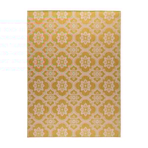 Het Buitenkleed - Rio Flower Geel is de perfecte mix van vintage charme en moderne functionaliteit. Het grafische bloemenpatroon in geel-wit is een speelse knipoog naar vintage mozaïektegels, en komt prachtig tot leven op een zonnig terras of balkon. De rechthoekige vorm zorgt voor een krachtig lijnenspel dat structuur en karakter brengt in iedere buitenruimte.
