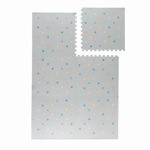 Creëer een plek voor eindeloos speelplezier met de Foam puzzelmat - Alfie Dots Lichtgrijs. Deze vrolijke speelmat bestaat uit zes grote puzzelstukken van 60x60 cm met handige, afneembare randen. Zo bouw je in no-time een zachte ondergrond waar kinderen naar hartenlust kunnen kruipen, spelen en ontdekken. Het speelse dots-patroon in lichtgrijs geeft de puzzelmat een frisse look die net zo goed past in de woonkamer als in de kinderkamer.