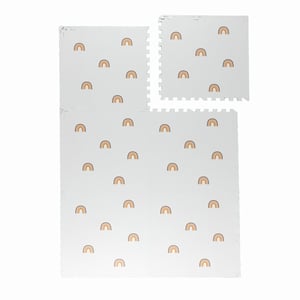 Creëer een ruimte voor eindeloos plezier met Foam puzzelmat - Alfie Rainbow Wit. Alfie is een comfortabele speelmat gemaakt van hoogwaardig EVA foam, voor het ultieme speelcomfort. En het leukste? Alfie kan helemaal uit elkaar gehaald worden! Deze puzzelmat bestaat uit zes grote puzzelstukken van elk 60x60cm, compleet met verwijderbare randen, waardoor je de indeling van de mat naar wens kunt aanpassen. Met prachtige kleuren en patronen, speciaal ontworpen voor kleine avonturiers, biedt Alfie een speelervaring vol fantasie. Deze speelmat is dus niet alleen praktisch, maar ook leuk! Laat je kinderen genieten terwijl ze hun eigen speelwereld creëren op de kleurrijke en zachte ondergrond van puzzelmat Alfie.