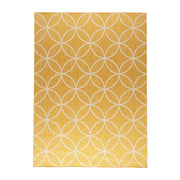 Dit gele buitenkleed is gemaakt van platgeweven polypropyleen, een sterk en onderhoudsvriendelijk materiaal dat bestand is tegen zon, regen en vuil. Je spoelt het eenvoudig schoon met de tuinslang en doordat het kleed snel droogt, is het meteen weer klaar voor gebruik. Dankzij de OEKO-TEX® certificering weet je bovendien dat het veilig is voor kinderen en huisdieren.