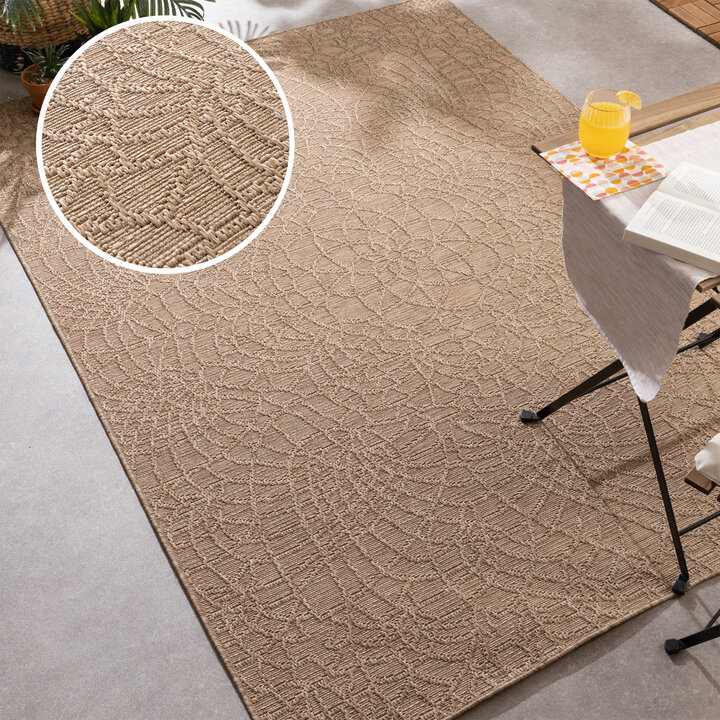 In- & Outdoorkleed - Dunes Mandala Bruin is beschikbaar in verschillende maten, namelijk: 160x230cm, 200x290cm en 240x330cm.