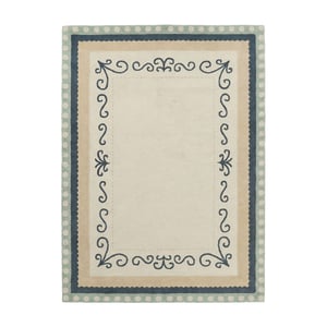 Houd je van modern, maar wil je nét wat meer karakter? Katoenen vloerkleed - Nola Border Groen lost dat precies op. De lichte crème basis houdt de ruimte fris, terwijl de blauwe border met afgeronde krullen het kleed die herkenbare designer-look geeft die je nu overal ziet in woonmagazines: licht, grafisch en toch zacht. Daardoor past dit katoenen vloerkleed moeiteloos in een Scandinavisch interieur en voelt het net wat eigenzinniger dan een standaard effen kleed. Dit is een vloerkleed met rand dat je woonkamer in één keer meer samenhang geeft.