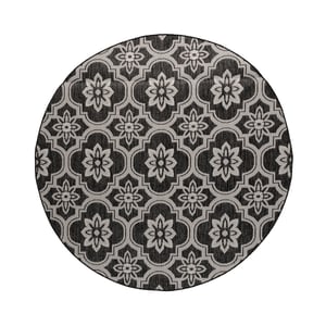 Rond buitenkleed - Rio Flower Zwart is beschikbaar in verschillende maten, namelijk: Ø 100cm, Ø 120 cm, Ø 140cm, Ø 160 cm, Ø 200 cm en Ø 230 cm.