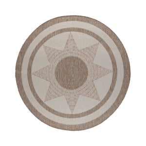 Het rond jute buitenkleed - Nusa Sun Beige/Crème is dé sfeermaker voor iedereen die droomt van een bohemian buitenruimte. Het zonvormige motief doet denken aan authentieke handgemaakte kleden en geeft je tuin, balkon of terras direct een warme, uitnodigende uitstraling. De natuurlijke mix van beige en crème sluit perfect aan bij houten vlonders, rotan meubels of een groene tuin vol planten.