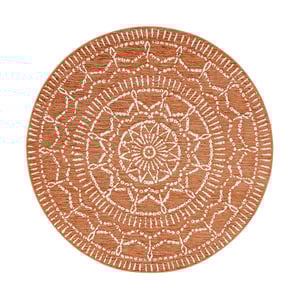 Rond modern buitenkleed - Porto Aztec Terra is een prachtig buitenkleed met een Aztec print. Dit buitenkleed is onmisbaar in een Bohemian tuin, terras, balkon of veranda. De terra basis en cremekleurige opdruk voegen een zomers tintje toe aan ieder buitenverblijf! Door de materiaalsamenstelling van polypropyleen en polyester is dit buitenkleed zeer onderhoudsvriendelijk. Wie zegt dat stijl en gemak niet samen kunnen, heeft het goed mis! Buitenkleed Porto is verkrijgbaar in verschillende kleuren en designs. Kies jouw favoriet!
