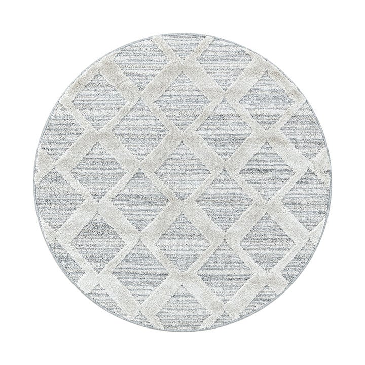 Rond scandinavisch vloerkleed - Pitea Diamond Grijs is een zeer comfortabel vloerkleed voor in zowel je woonkamer als slaapkamer. Plaats hem in je woonkamer om de ruimte meer sfeer te geven. Door het rustige kleurenpalet en het strakke patroon kan het vloerkleed in ieder interieur geplaats worden. Met dit vloerkleed kom je dus helemaal tot rust. Plaats hem daarom in je slaapkamer om in de ochtend lekker wakker te worden en bij het uit bed stappen de dag al goed begint op dit zachte vloerkleed. Het vloerkleed is gemaakt van 100% polypropyleen een fijne synthetische vezel dat makkelijk is in onderhoud en zeer slijtvast is.