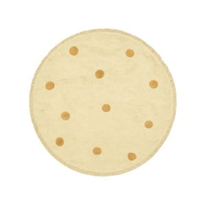 De ronde vorm en pastel gele ondergrond met vrolijke stippen brengen rust en vrolijkheid samen. Mooi als licht middelpunt van de kamer, waar kinderen kunnen lezen, spelen of gewoon even lekker liggen. Het OEKO-TEX® certificaat garandeert dat het rond vloerkleed kinderkamer - Lou Dots Geel vrij is van schadelijke stoffen en dus volledig veilig is voor kinderen en huisdieren.