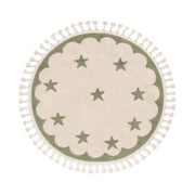 Het rond kindervloerkleed - Moos Star Groen is het zachtste plekje voor jouw kleintje. Dit kindervloerkleed groen heeft een neutrale, cremekleurige basis met groene sterretjes die de kinderkamer zacht laten stralen. Het sterren-motief maakt dit vloerkleed een vrolijke toevoeging in zowel een minimalistische, als een kleurrijke kinderkamer. Zo wordt de kamer een knusse en uitnodigende plek waar je kindje zich helemaal thuis voelt.