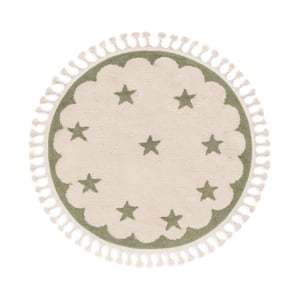 Rond wasbaar kindervloerkleed - Moos Star Groen  - 1