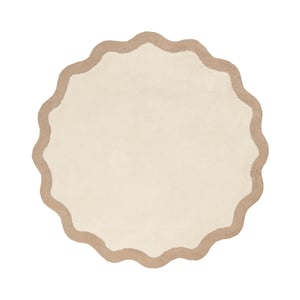 Met Rond wasbaar vloerkleed - Hazy Beige/Crème van Fraai geef je jouw interieur een vrolijke en speelse uitstraling. De golfende beige rand voegt een creatieve draai toe aan de zachte, crèmekleurige basis. De vorm oogt licht en beweeglijk, waardoor dit rond vloerkleed de woonkamer of slaapkamer meteen meer leven geeft , zonder dat het te druk oogt. De combinatie van vorm en kleur maakt dit rond vloerkleed een subtiel design-accent.