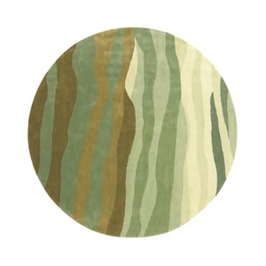 Het rond wollen vloerkleed - Liora Groen voelt alsof je een zacht duinlandschap midden in de ruimte legt. De handgetufte banen in saliegroen, olijfgroen en zand bewegen in organische cirkels om elkaar heen en vormen een gelaagd motief dat naadloos meeloopt met de ronde vorm. Daardoor krijgt de vloer een zachtere contour en ontstaat er een warme, uitnodigende plek waar de ruimte als vanzelf omheen vloeit.