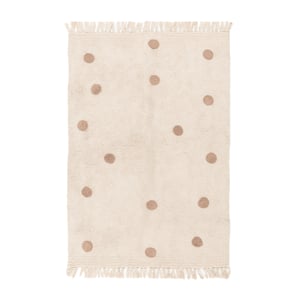 Breng zachtheid en vrolijkheid samen met het vloerkleed kinderkamer - Lou Dots Taupe van Little Olly. Dit kindervloerkleed taupe voelt alsof je op een wolk stapt, en dat is geen toeval. Dankzij de fluffy, hoogpolige structuur van 100% katoen is het niet alleen heerlijk zacht onder kleine voetjes, maar ook ademend en warm in elk seizoen. De handgetufte afwerking geeft het kleed een volle, levendige uitstraling; elke stip is subtiel voelbaar en nodigt uit om te ontdekken.