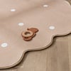 Creëer een dromerige sfeer met het Wasbaar vloerkleed - Cloudy Stippen Beige. Met haar golvende randen en speelse stippen brengt dit pastel vloerkleed een stukje magie naar elke kinderkamer. Cloudy is gemaakt van 100% polyester en heeft een dikte van 10mm, met een lage poolhoogte van 5mm. Hierdoor is het kinderkleed zo zacht is als een wolkje en zowel comfortabel als kindvriendelijk om op te spelen en ontspannen. En als er iets knoeit, geen zorgen! Cloudy kan gewoon in de wasmachine, waardoor ze altijd klaar is voor nieuwe speelsessies. Ontdek de zachtheid en charme van dit kinderkamer vloerkleed en laat je de kamer tot leven komen met Cloudy!