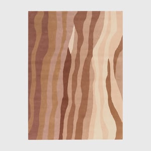 Het wollen vloerkleed - Liora Roze voelt alsof je een zacht duinlandschap je woonkamer binnen haalt. De handgetufte banen in poederroze, oudroze en warm beige lopen in organische golven over elkaar heen en vormen een gelaagd motief dat de vloer minder vlak maakt. Het patroon doorbreekt rechte lijnen van bank en salontafel en geeft je zithoek een rustig, maar uitgesproken karakter.