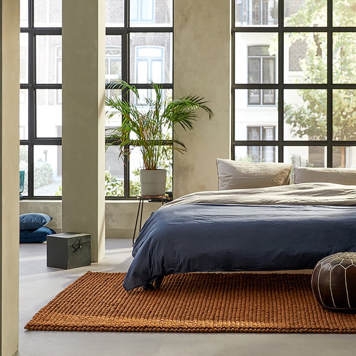 Er zijn verschillende manieren waarop vloerkleden worden geproduceerd. Iedere productiemethode heeft weer een ander effect op de look en feel van een vloerkleed. Geweven vloerkleden worden gemaakt door draden horizontaal en verticaal in elkaar te weven, met de hand of machinaal. Ze onderscheiden zich door hun platte structuur en strakke uiterlijk. Gevlochten vloerkleden worden vervaardigd door strengen stof of materiaal in elkaar te vlechten. Deze methode creëert vloerkleden met een kenmerkende vlechttextuur. Geknoopte vloerkleden hebben een basis van inslag- en kettingdraden, waarbij iedere inslagdraad wordt voorzien van een rij knopen. Dit proces kan met de hand of machinaal worden uitgevoerd en resulteert in gedetailleerde patronen en texturen. Getufte vloerkleden worden gemaakt door garen door de rug van een vloerkleed te drukken. De garen die aan de bovenkant ontstaan, hebben een pluche textuur en zorgen voor een zacht oppervlak. Deze methode maakt het mogelijk om een verscheidenheid aan ontwerpen te creëren (met hoogteverschillen). Gedrukte vloerkleden worden vervaardigd door ontwerpen en patronen rechtstreeks op een stof of materiaal te drukken. Dit proces biedt een breed scala aan ontwerpmogelijkheden. |